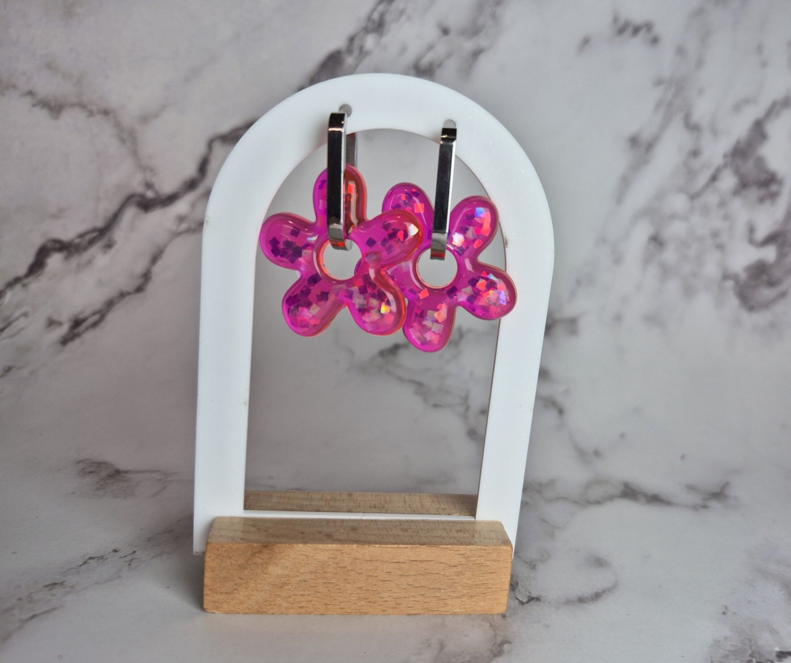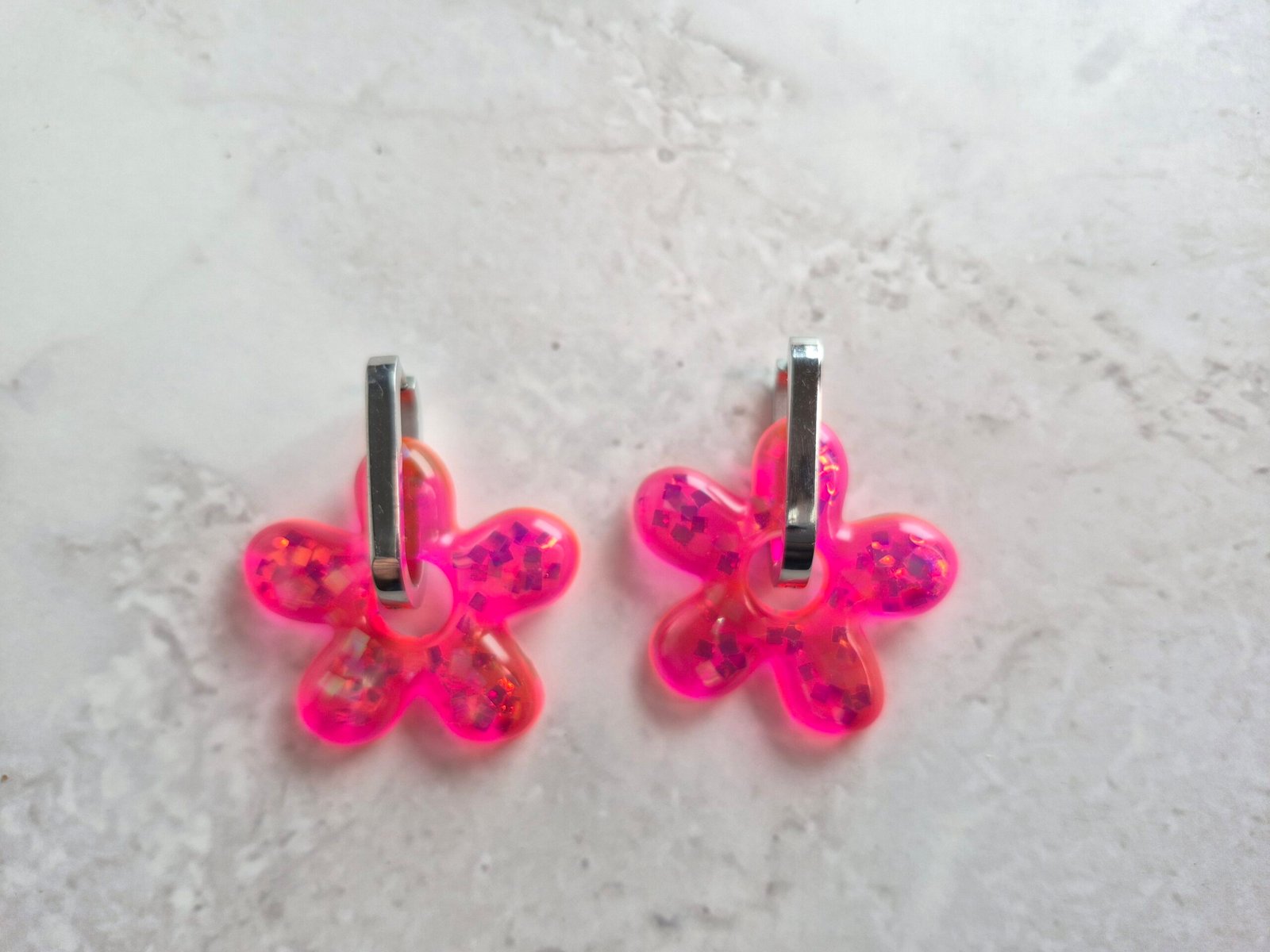 Boucles d’oreilles en forme de fleur en résine époxy , créoles en inox 304L.